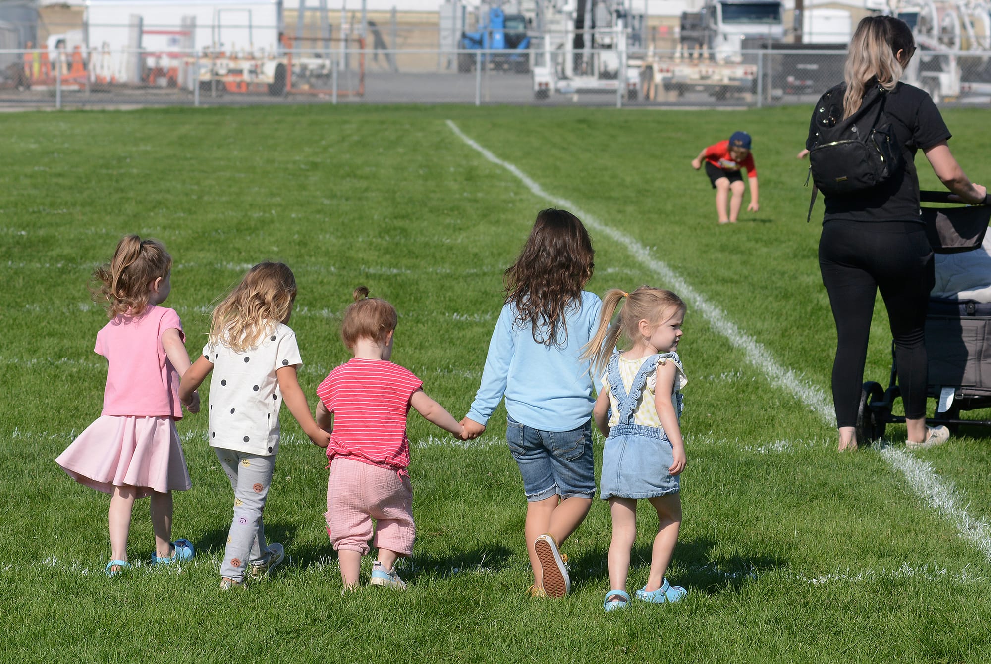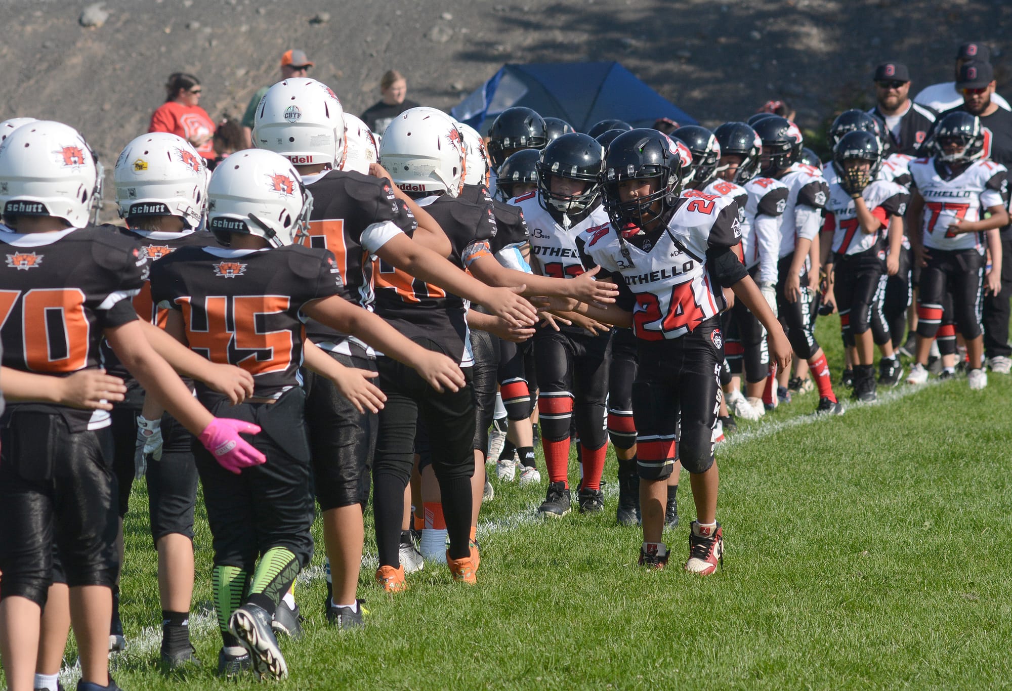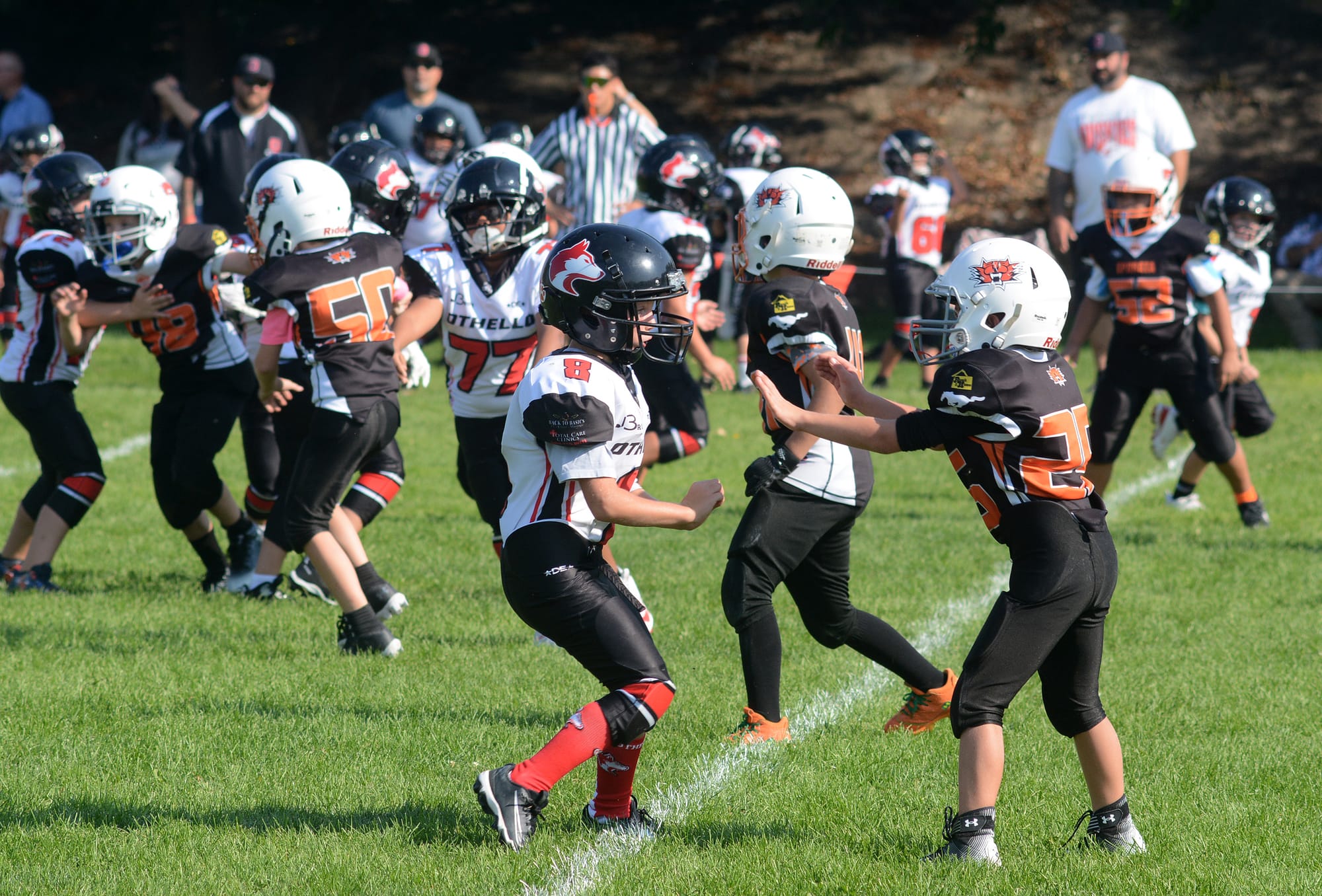The youngest division — 3rd- and 4th-graders — led off the morning action, followed later with separate games featuring 5th- and 6th-graders. Families lined both sidelines on a splendid fall day, cheering on the young gridders as they learn the fundamentals of the game.