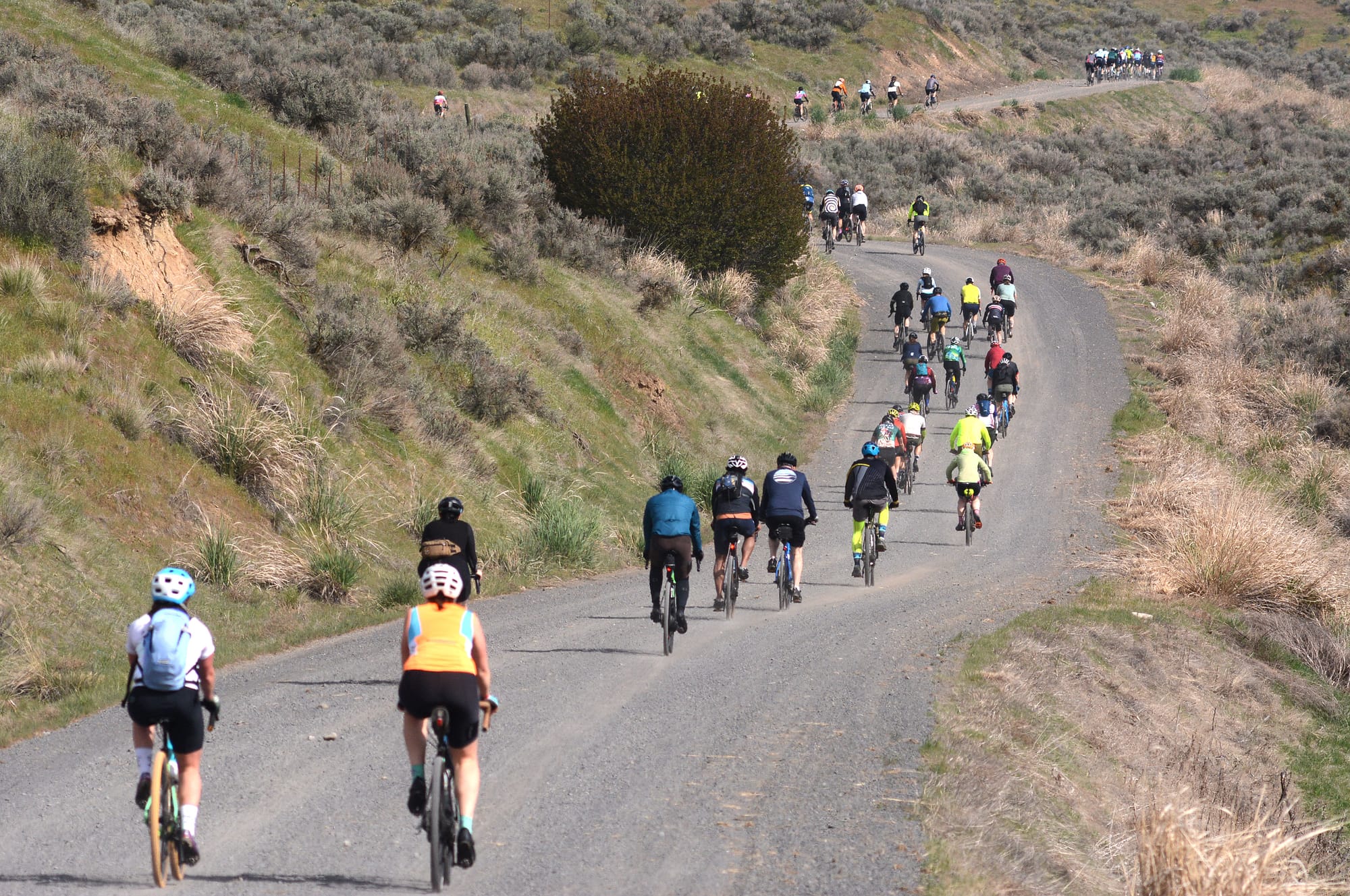 Actually, two rides are offered. The Medio is 45 miles in length, including 21 miles on gravel roads, with 3,000 feet of climbing. Then there’s the Grande — 85 miles long with 38 miles on gravel and a thigh-burning 6,800 feet of climbing over six significant hills stretched between high dryland wheat country and jagged basalt canyons.