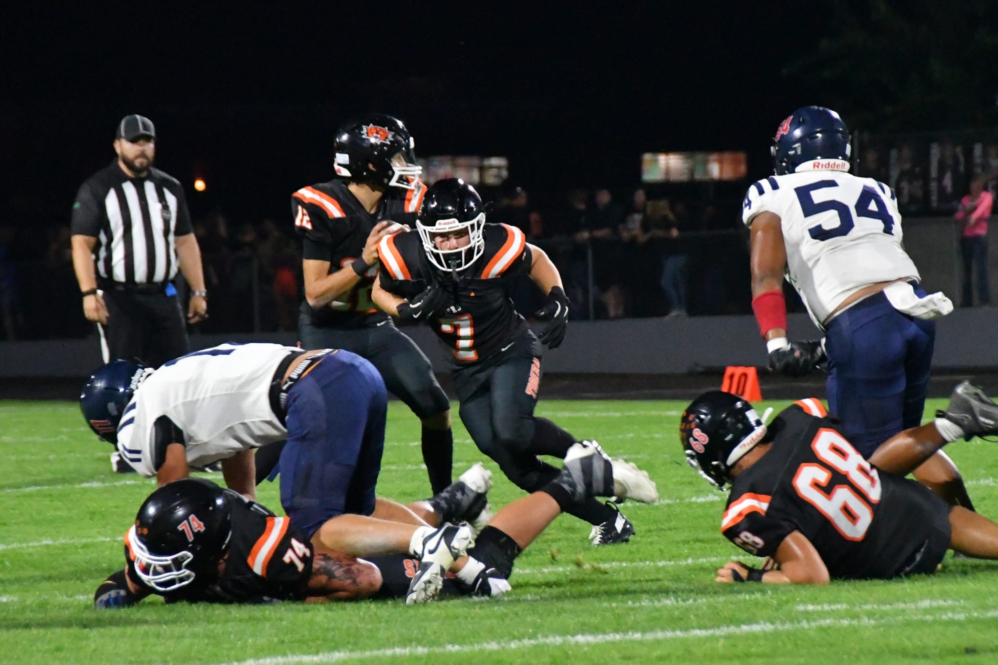 For the night, Hendrick’s passing attempts were limited but effective. In the second half, he tossed touchdown strikes to Schluckebier and Mitchell Morford – both receivers finished with two receptions for 11 and 33 yards respectively. Additional receptions by Hunter Mills, Calvin Lybbert, Aiden Avila, Nain Guerrero, and Cooper Vasquez kept drives moving and the Ellensburg defense off balance.