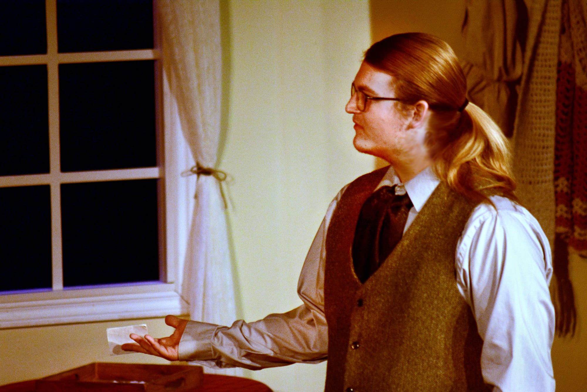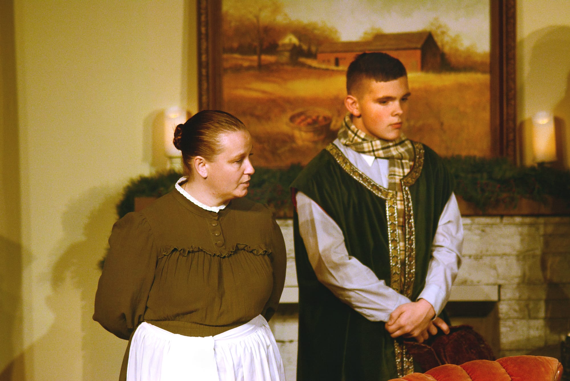 However, a year later, Christmas is again a joyous occasion. Beth (Summer Kump) has quietly helped keep peace in the family. Amy (Sawyer Greenfield) has gotten an opportunity to go to Europe. Budding writer Jo (Mary Hale) sells her first story to a newspaper. Meg (Finley Wittenborn) is in love and engaged to John Brooke (Connor Leasher), who is a tutor for Laurie (Ely Parrott). And, the family receives glad tidings that Father is healthy again and coming home on the evening train.