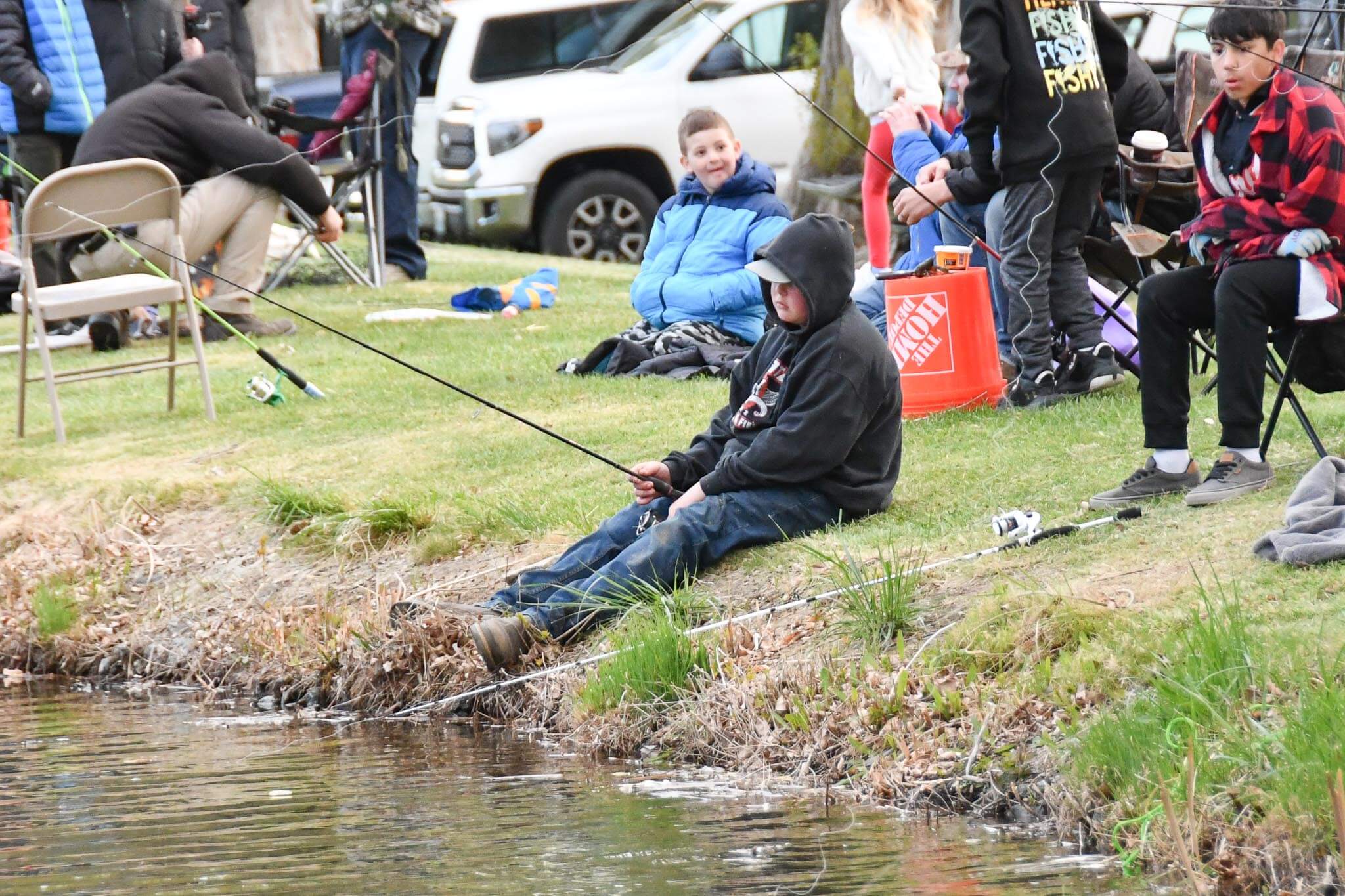 Hundreds of kids, families lined the banks at Oasis Park's Ping Pond Saturday morning.