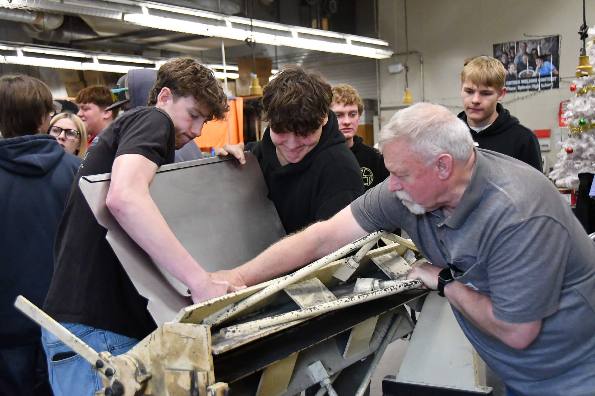 Devine, now in his 17th year teaching welding and metalworks at EHS, saw an opportunity to connect a community project to real-world career exposure. He reached out to Moses Lake Sheet Metal to further refine the plans, and invited industry professionals into his classroom to help students construct the boxes while learning about careers in the sheet metal trade along the way.