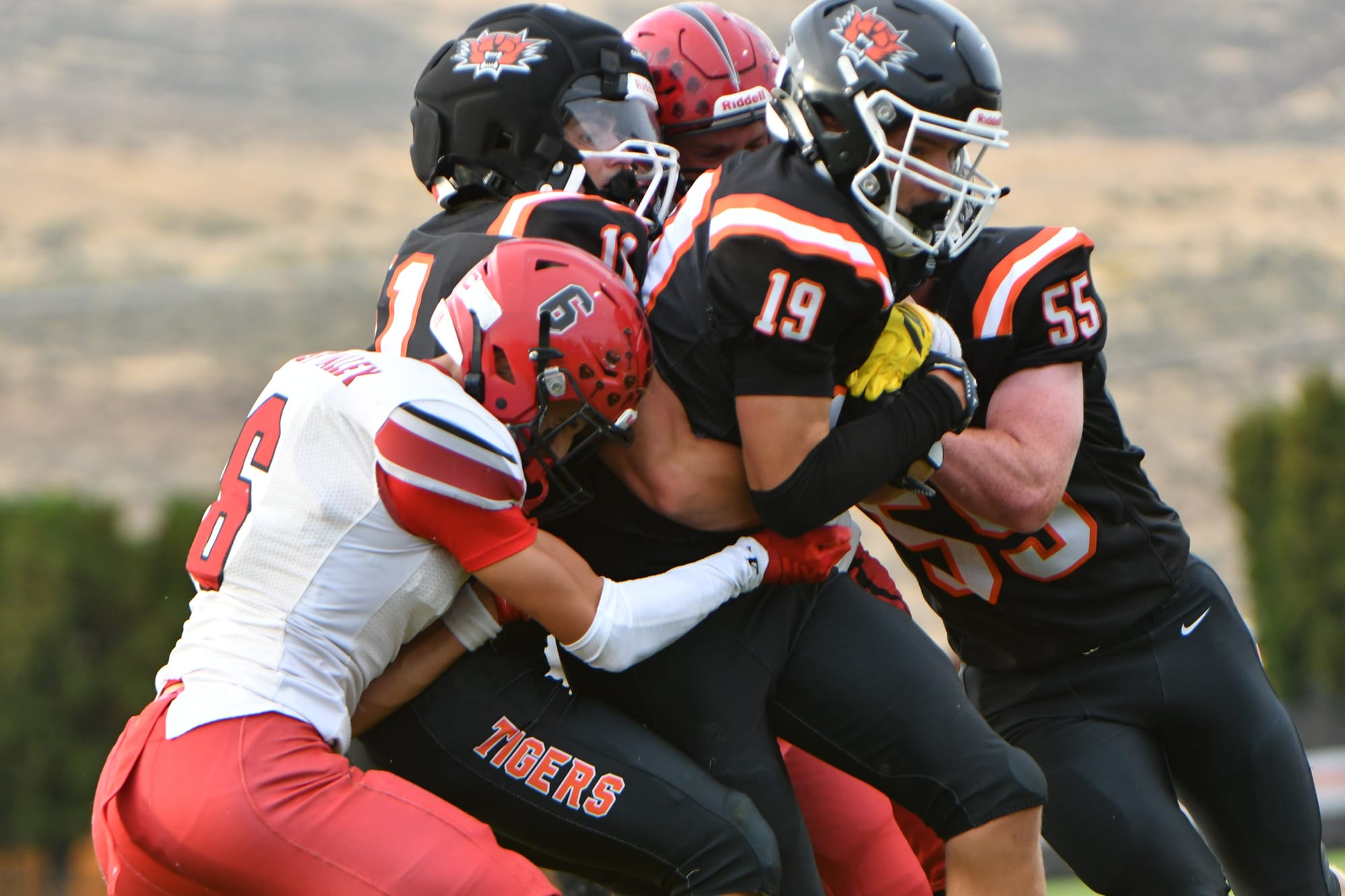 Quarterback Brady Hendrick scored both Tiger touchdowns on runs of 9 and 5 yards to keep the Tigers within 21-14 at halftime. Hendrick also led the Tiger rushing game with 59 yards on 12 carries, while running back Carson Andrus added 35 yards on 11 attempts.