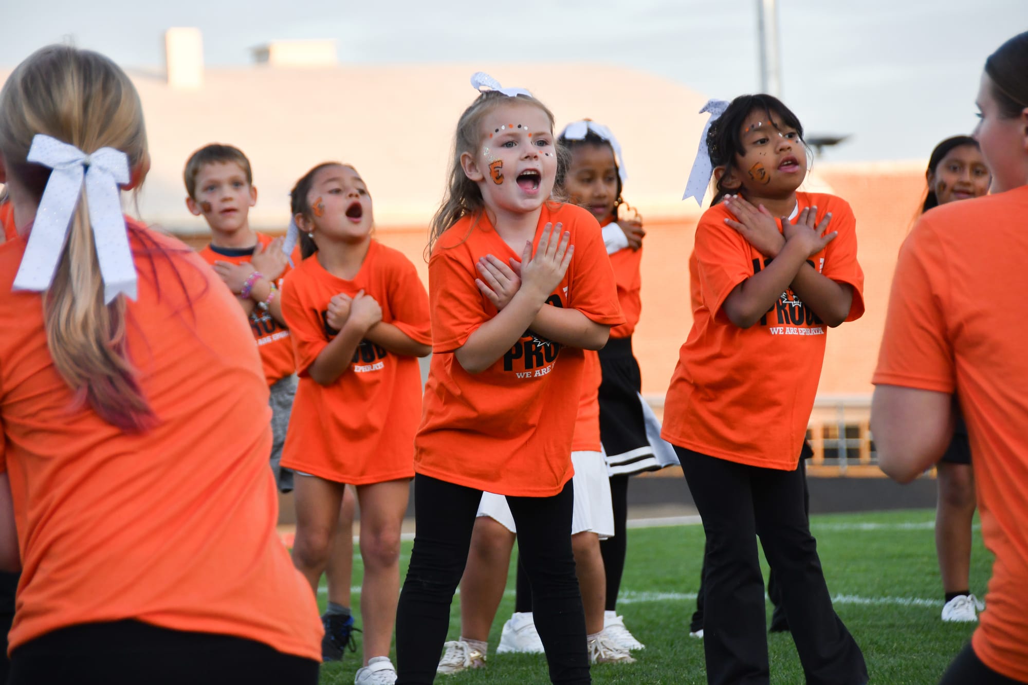 The halftime show belonged to the youngest Tigers on Saturday night, as youth cheer camp participants from pre-kindergarten through eighth grade took the field to perform with the Ephrata High School cheer team. The camp was hosted by the EHS cheer squad, a photo gallery can be found at the end of this article.