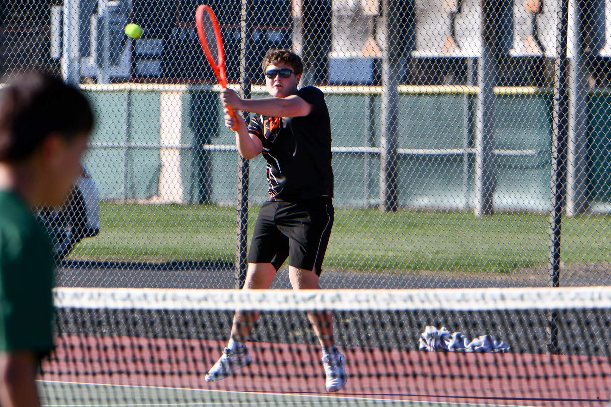 The boys were without Morford, who was out due to illness. Morris moved up to first singles and won this opening set 6-4 against Othello's Max Harris, but dropped the second 6-3. In the third set, Morris clawed back from a 1-4 deficit in but Harris edged him in a tiebreak, 7-6 (7-4).
