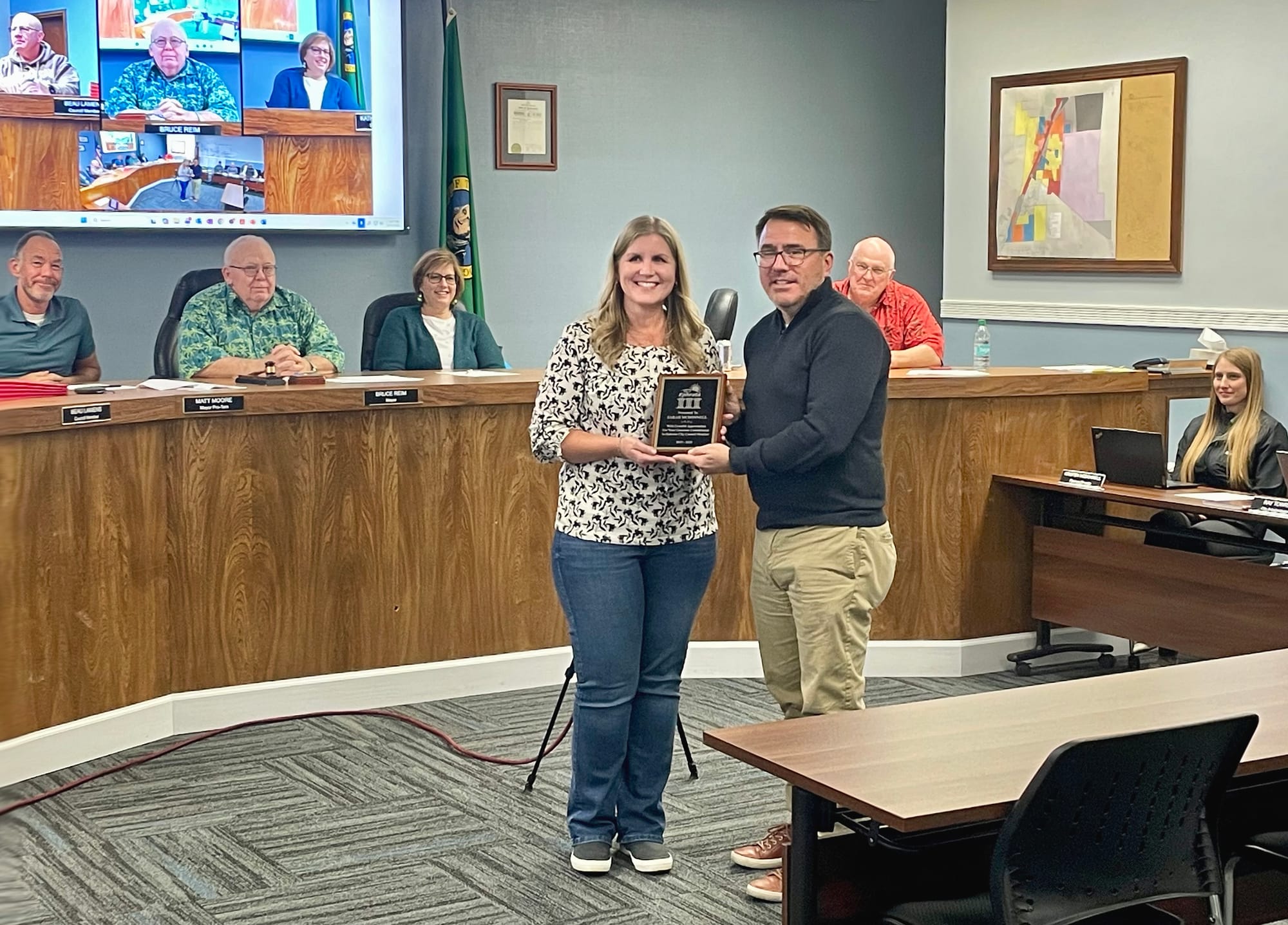 In other business during their Dec. 3 meeting, the council recognized the efforts and contributions of departing member Sarah McDonnell, who did not seek re-election to a new four-year term in office. City administrator Ray Towry presented McDonnell with a commemorative plaque in appreciation of her service. She was initially appointed to the council in December 2018. McDonnell will be succeeded in January by council newcomer James Mathis, who was unopposed for the Position 1 seat in the Nov. 4 general election.