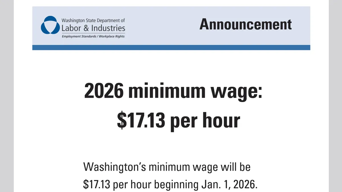 TUMWATER – Effective Jan. 1, Washington state’s minimum wage for 2026 will rise to $17.13 per hour, a 2.8% increase from the current rate of $16.66 per hour.
