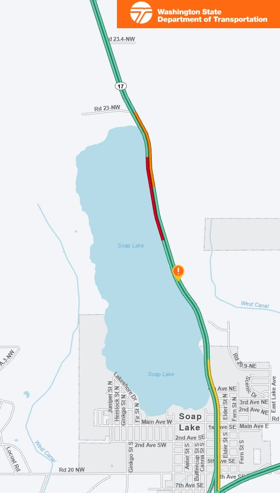 SOAP LAKE — Motorists along State Route 17 on Saturday encountered alternating, one-lane traffic about one mile north of Soap Lake where workers were removing dangerous rock from an adjacent roadside cliff, reported the Washington State Department of Transportation.